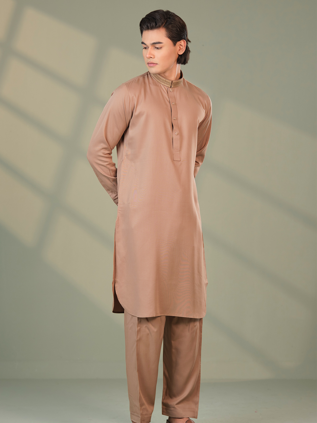 Experience refined traditional elegance with the adlib Premium Cotton Men's Kabli in Light Brown, designed for men who appreciate classic cultural style with modern sophistication. This beautifully tailored kabli set features a minimalist yet luxurious design, highlighted by a finely detailed embroidered collar that adds a subtle touch of elegance.