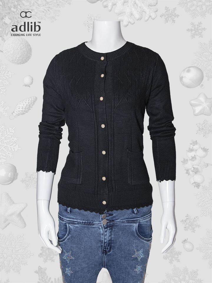 Elevate your wardrobe with the new Ladies Short Cardigan in Black Color from Adlib CHANGING LIFE STYLE. Perfect for layering, this chic cardigan features a classic design that effortlessly complements any outfit. Available in all sizes, it’s crafted from premium materials for a comfortable fit and timeless style. Ideal for both casual and formal occasions, our Black Short Cardigan is a versatile addition to any fashion-forward woman’s collection. Shop now and experience elegance and comfort like never before.